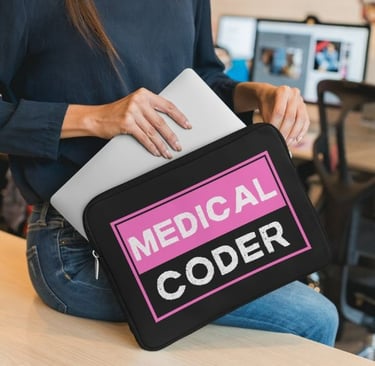 Protect your valuable laptop while showcasing your passion for medical coding with our laptop sleeve. Crafted from durable materials, this sleeve provides a snug fit for your laptop, safeguarding it from scratches and minor bumps. The clean and minimalistic design ensures that your dedication to your profession is always on display, even when you're on the go. It's the ideal accessory for medical coders who want to combine style and practicality.