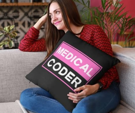 Add a touch of coding flair to your home or office with our Medical Coder throw pillow. Made with soft and comfortable materials, this pillow is not only a stylish addition to your decor but also provides excellent support for your back or neck. The minimalist design is elegantly displayed on the pillow cover, instantly transforming any space into a coding haven. It's the perfect gift for medical coders who want to add a touch of personality to their surroundings.